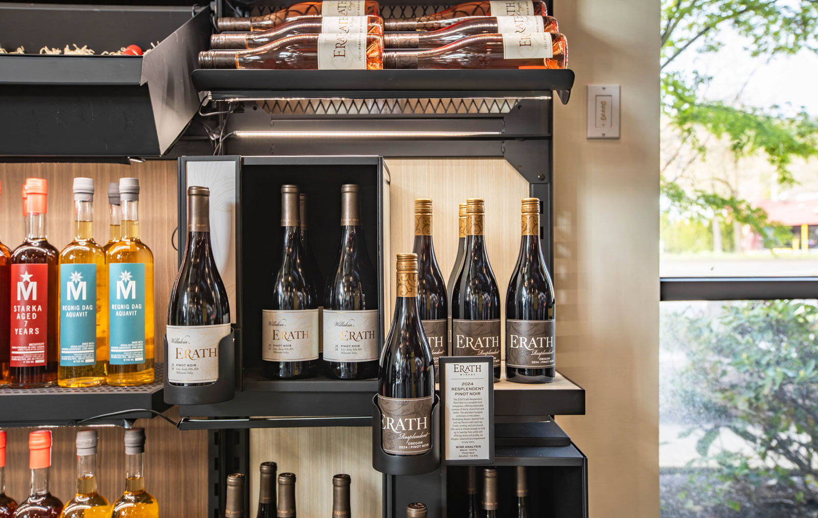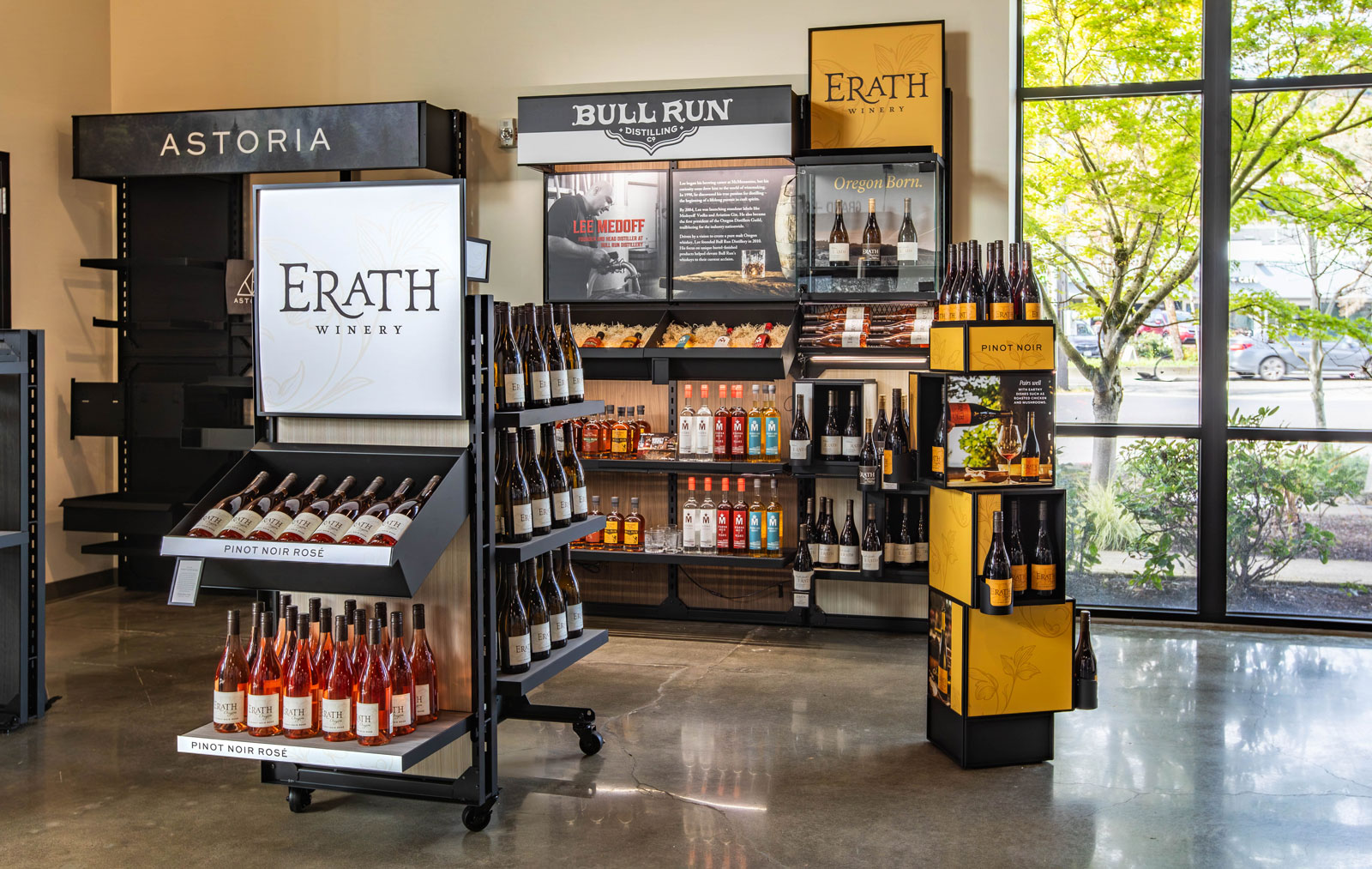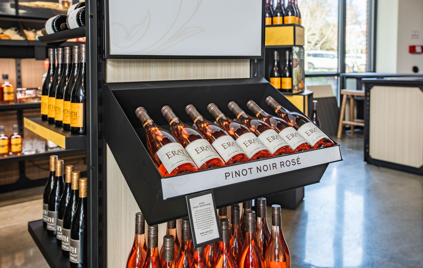 The Astoria modular wine display system is a flexible, eye-catching solution designed specifically for wine shops and grocery retailers. Accommodating any standard 75cl wine bottle, the line features freestanding wine display towers with interchangeable graphics, secure horizontal shelves, spring-loaded single bottle displays, and lockable wall-mounted showcases. Its modularity enables wine shops, brands, and grocery stores to create custom wine displays for any space or branding need. Built for high visibility and easy updates, Astoria wine displays keep merchandising organized, visually appealing, and ready to adapt as product lines evolve.